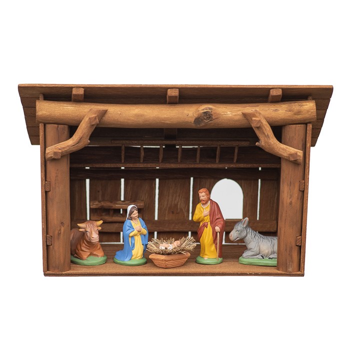 Etable en bois + 5 santons Escoffier 7cm