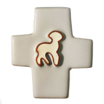 Croix en terre cuite émaillée.Existe en blanc , bleu clair ou bleu fonce. hauteur - 10 cmlargeur - 8,5 cm